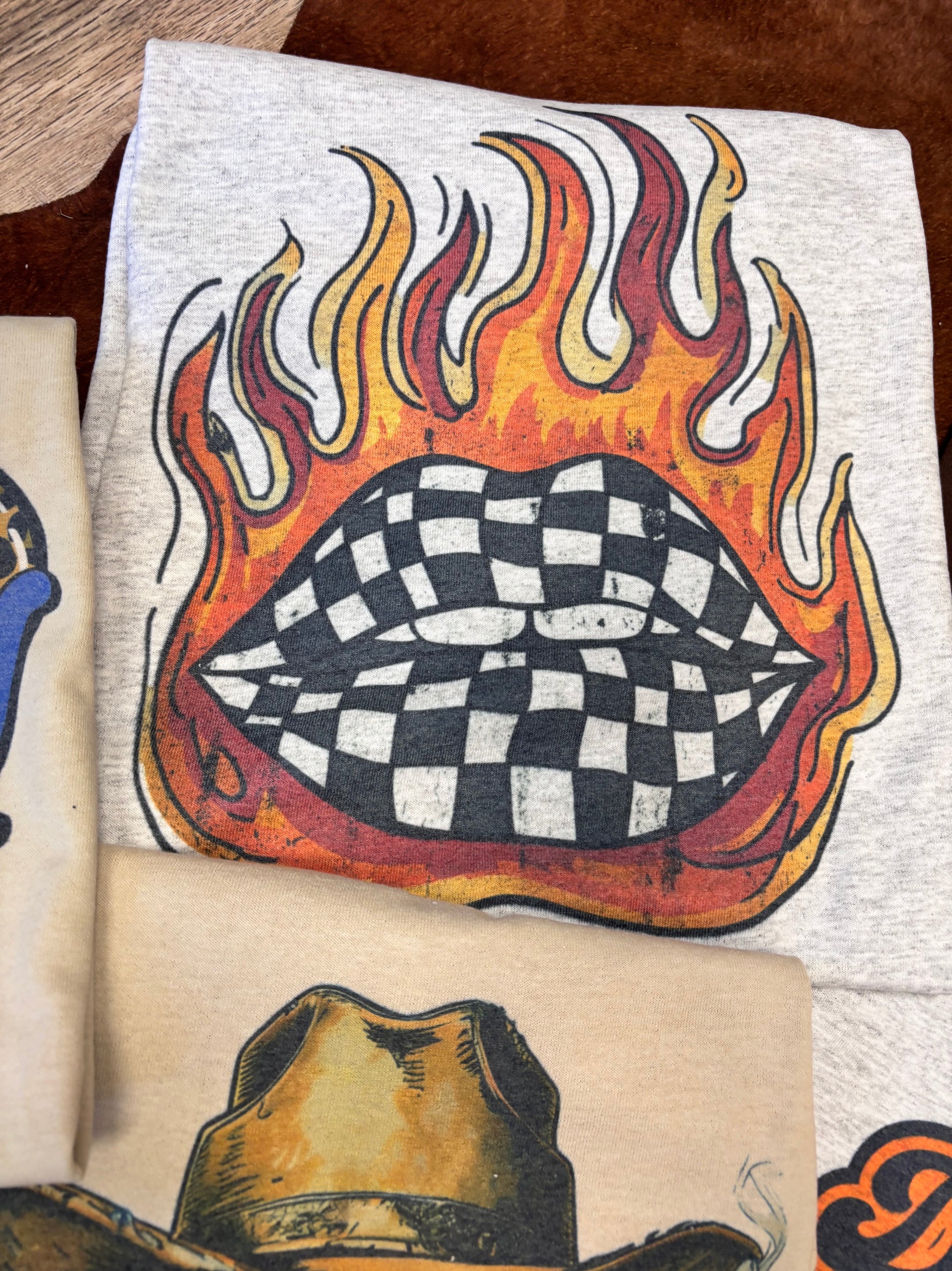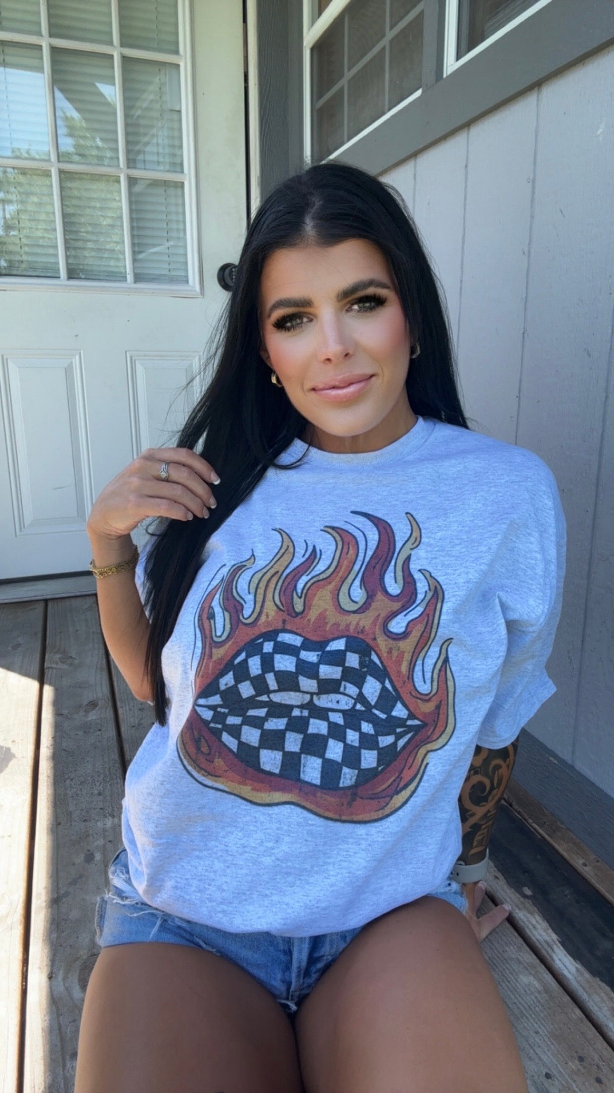 CHECKERED FLAME LIPS TEE