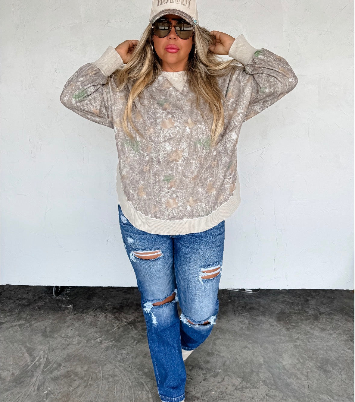 The perfect washed cotton flattering sweatshirt that everyone needs! Faded “vintage” colors. Features flattering rounded front and back hem with side slits!