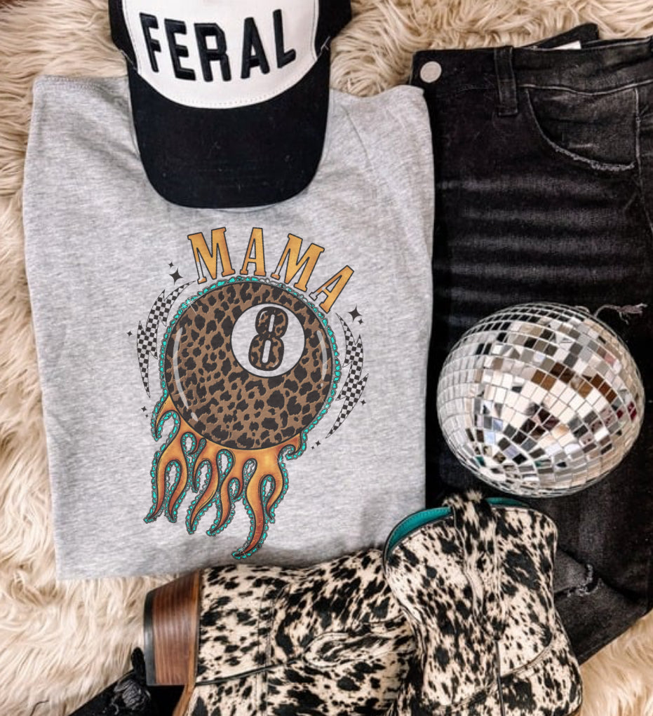 LEOPARD ORANGE TEAL FLAME MAMA SUB TEE