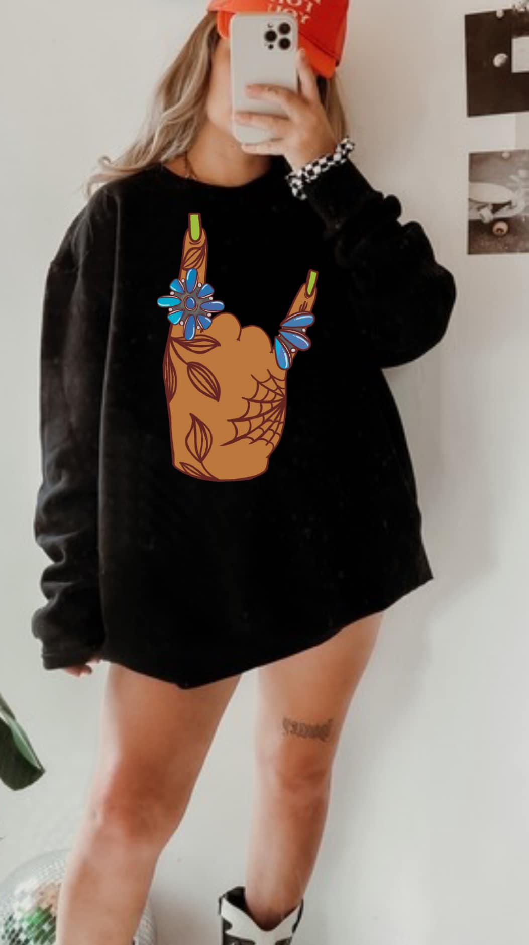 ROCK ON TURQUOISE CREWNECK