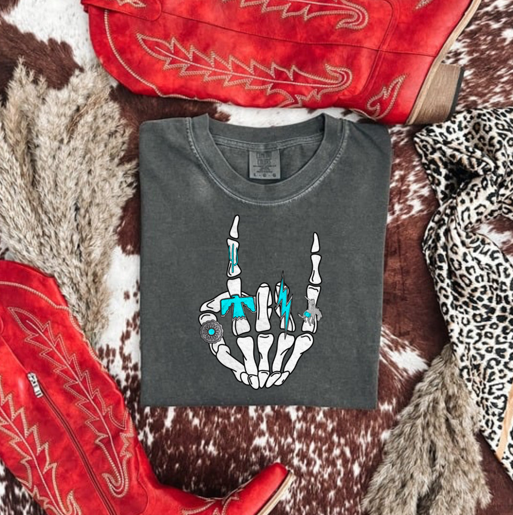 SKELE HAND WITH TURQUOISE RING COMFORT COLOR TEE