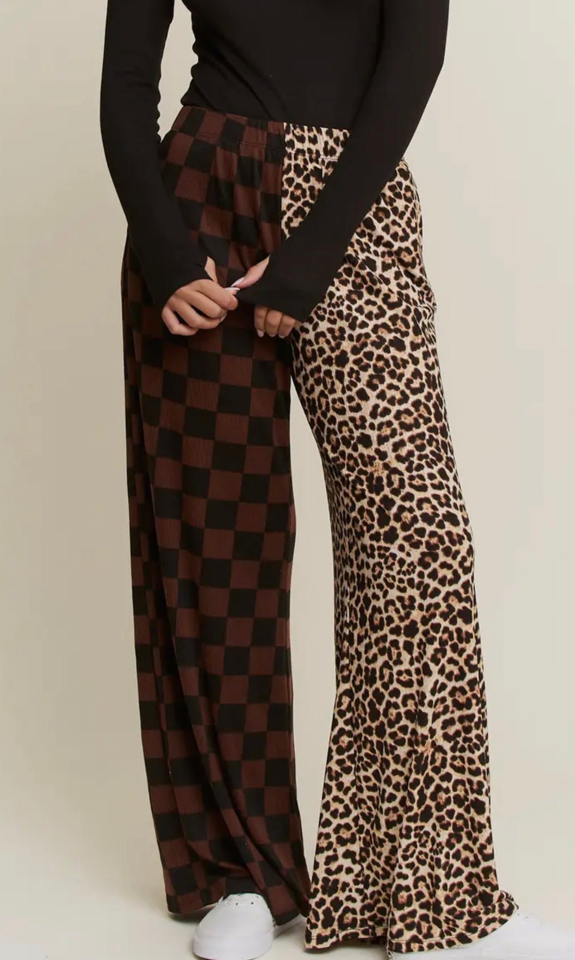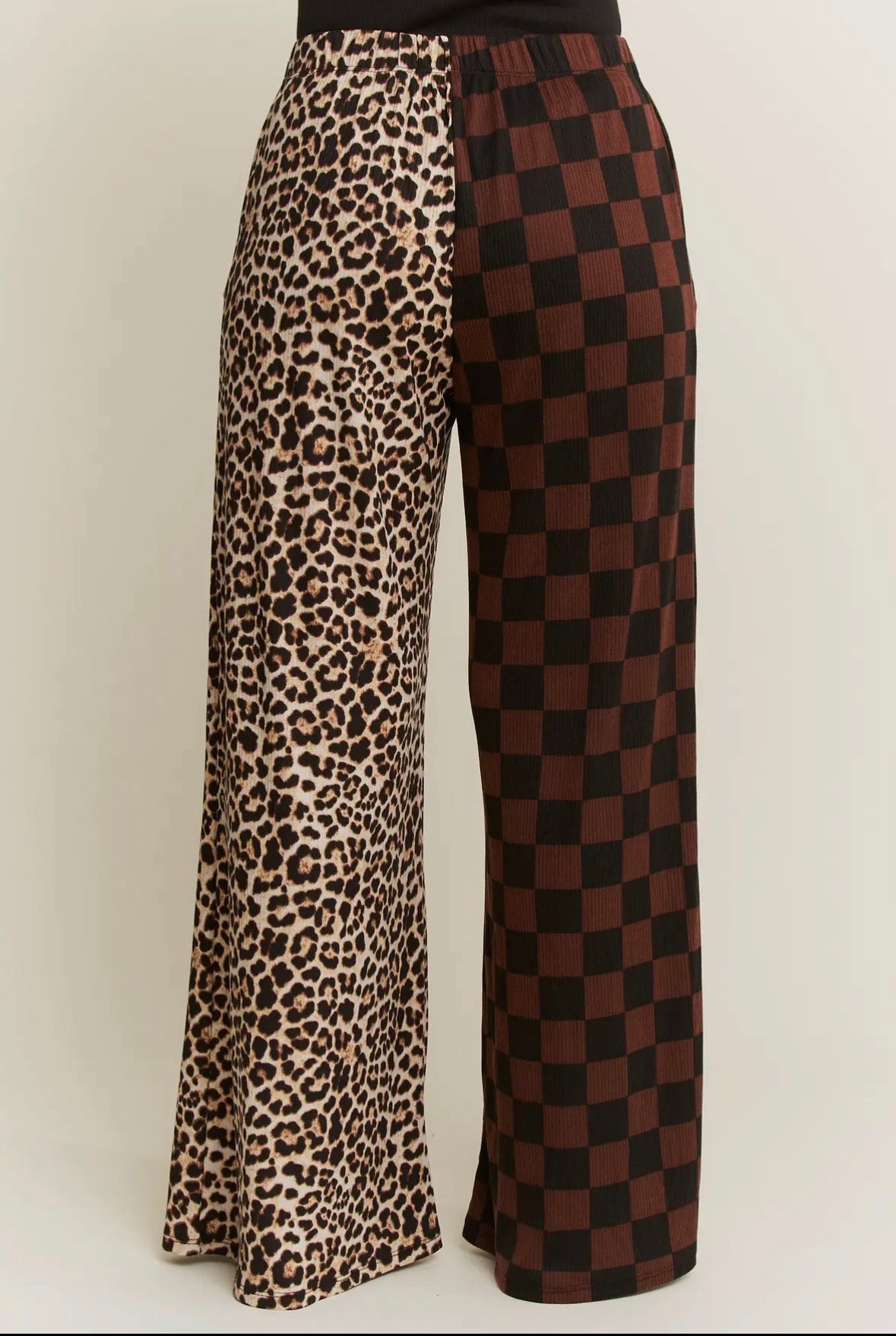 SPLIT DECISION LEOPARD-CHECKERED PANTS