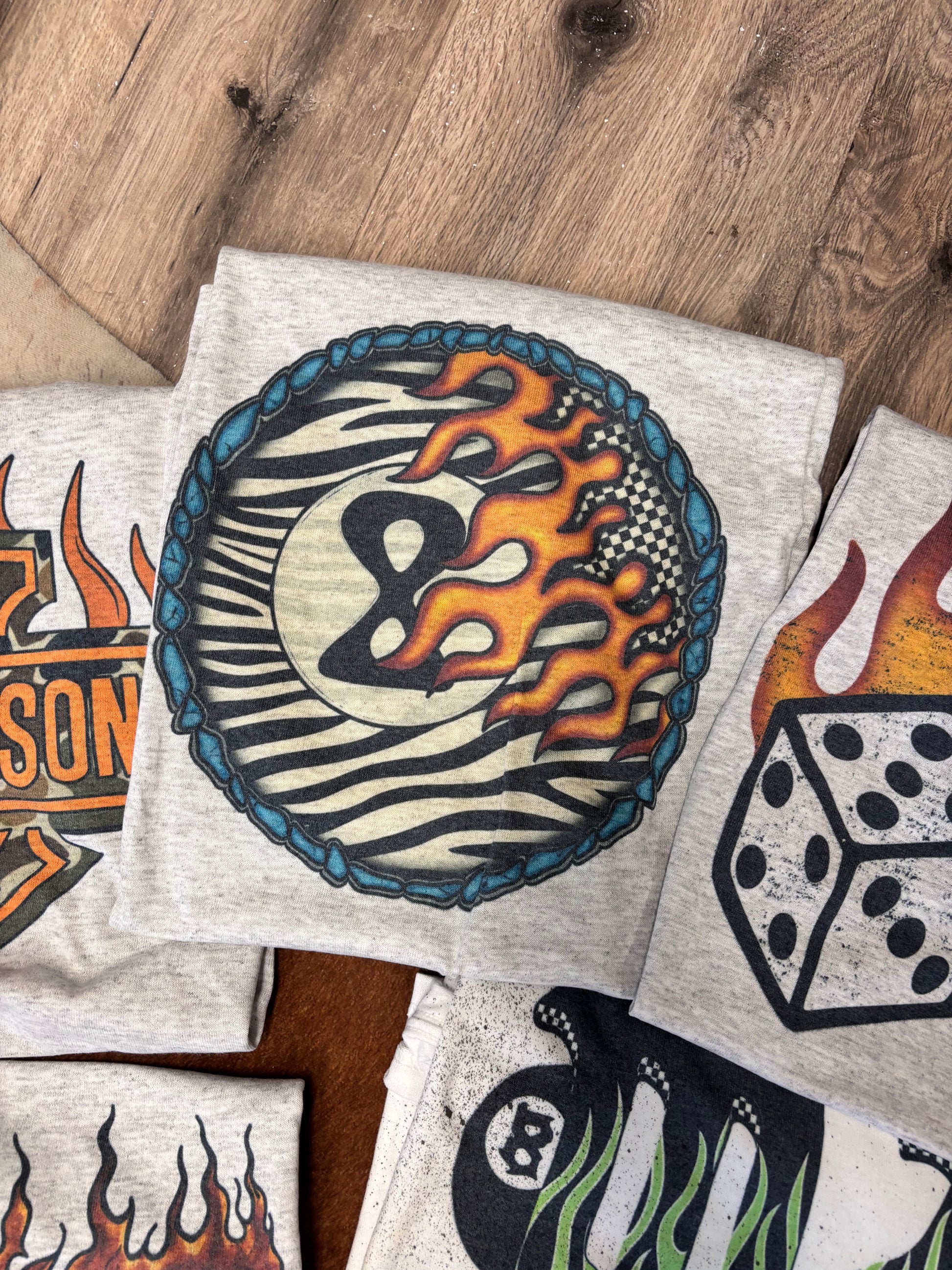 TIGER PRINT & FLAME 8 BALL TEE